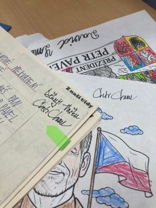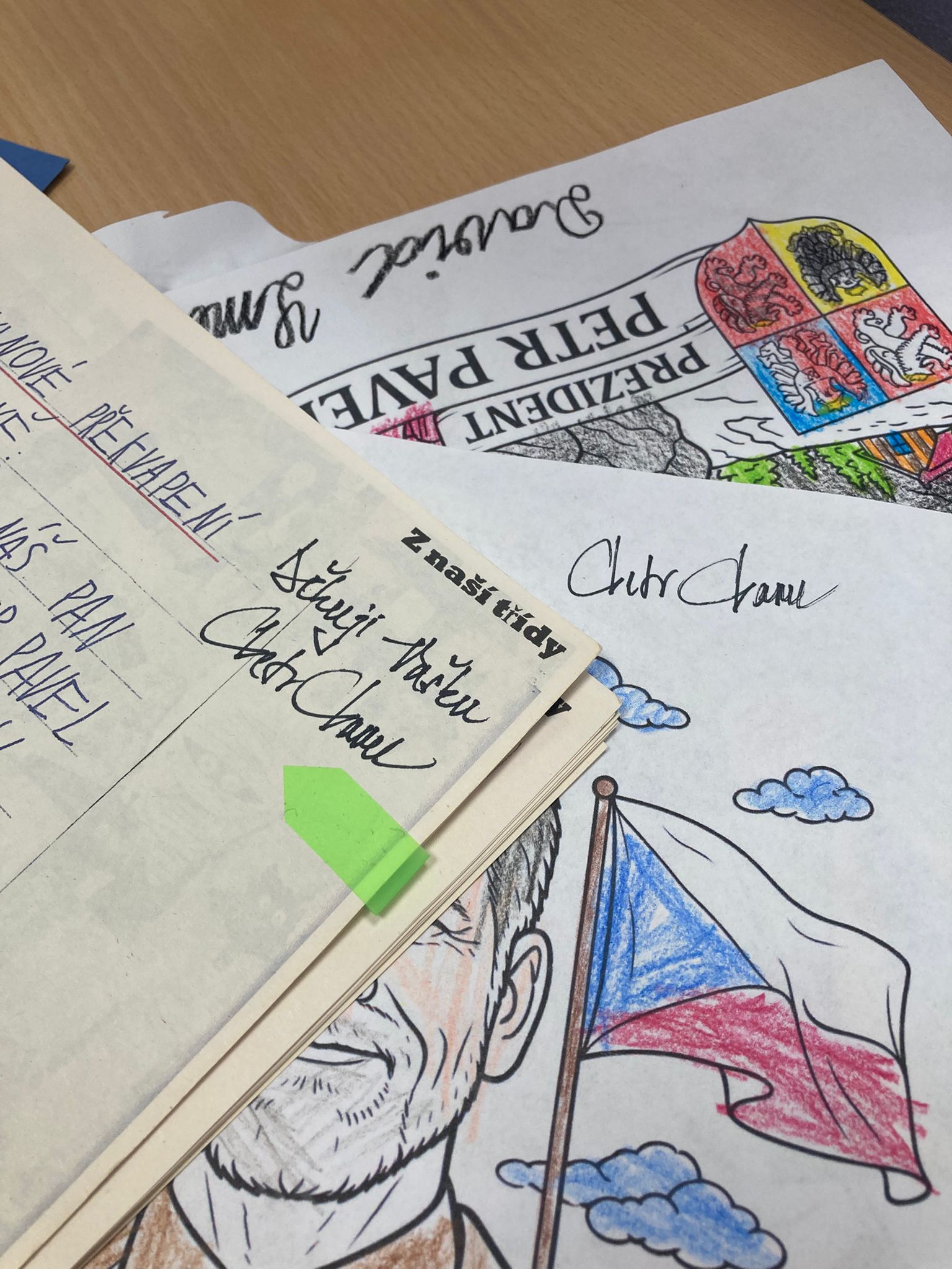 V rámci výuky předmětu „Člověk a společnost“ se žáci II.S letos blíže seznámili s prezidenty. Velký zájem vzbudila i debata o současné hlavě státu. Děti inspirovalo, že mohou oslovit představitele republiky přímo, a proto společně vytvořily vlastní omalovánky a napsaly dopis s prosbou o podepsání jejich prací.